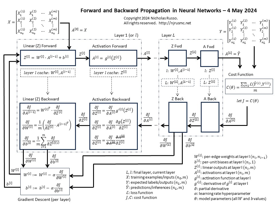 Detailed view of forward and backward propagation (plus implementation details).